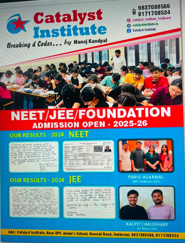 Led by Manoj Kandpal Sir (Director & HOD – Chemistry), Catalyst Institute has been shaping young minds and guiding them toward their dream careers in medical, engineering, and other competitive fields.