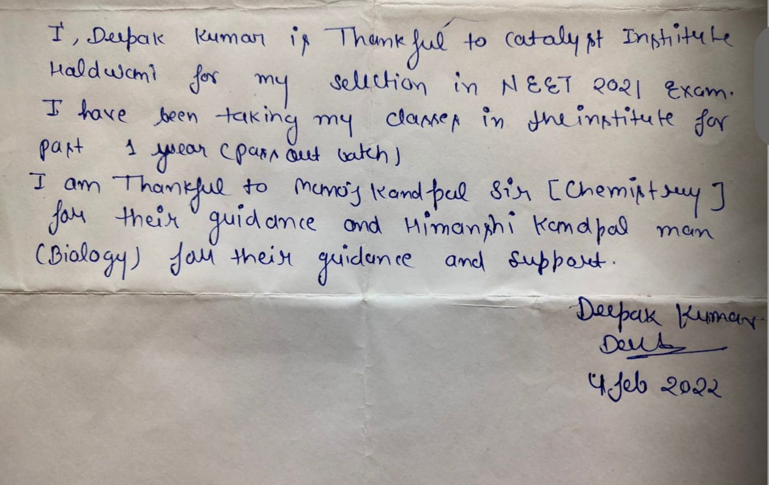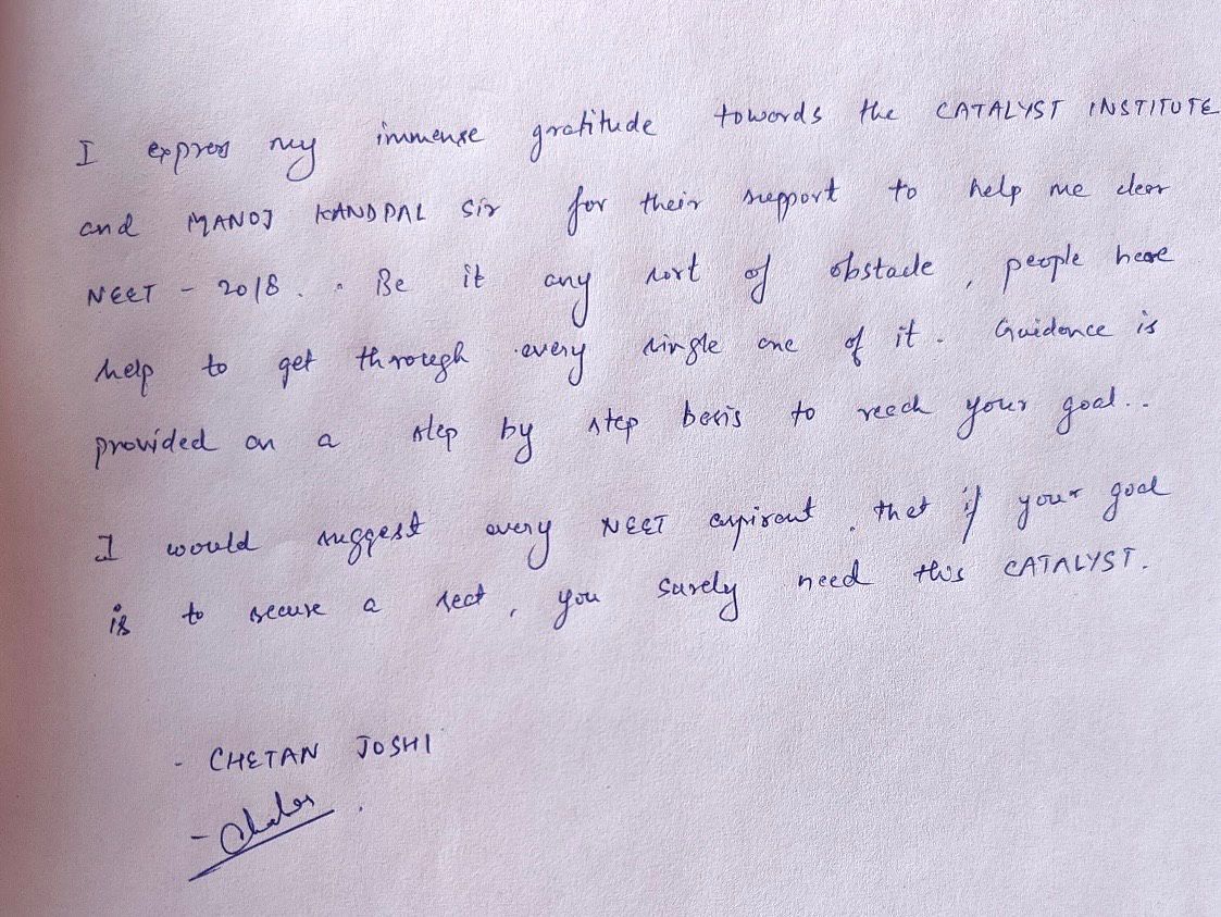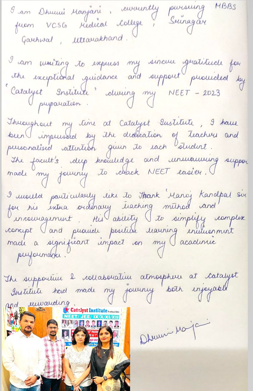Led by Manoj Kandpal Sir (Director & HOD – Chemistry), Catalyst Institute has been shaping young minds and guiding them toward their dream careers in medical, engineering, and other competitive fields.